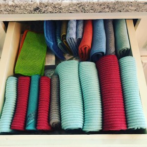 So here we are only a few weeks later and I’m enjoying the new organized drawers and cabinets…but there are still problems. You see, once you organize, it takes work to keep it that way. If you aren’t diligent about keeping the clutter out, it will creep back it. Those nicely folded shirts all standing upright only stay that way if you continue to fold them like that again and again. Have you ever tried to keep your three-year-old’s drawers looking like the footlocker of an army soldier? It’s possible if you don’t plan on letting them dress themselves. Ever.